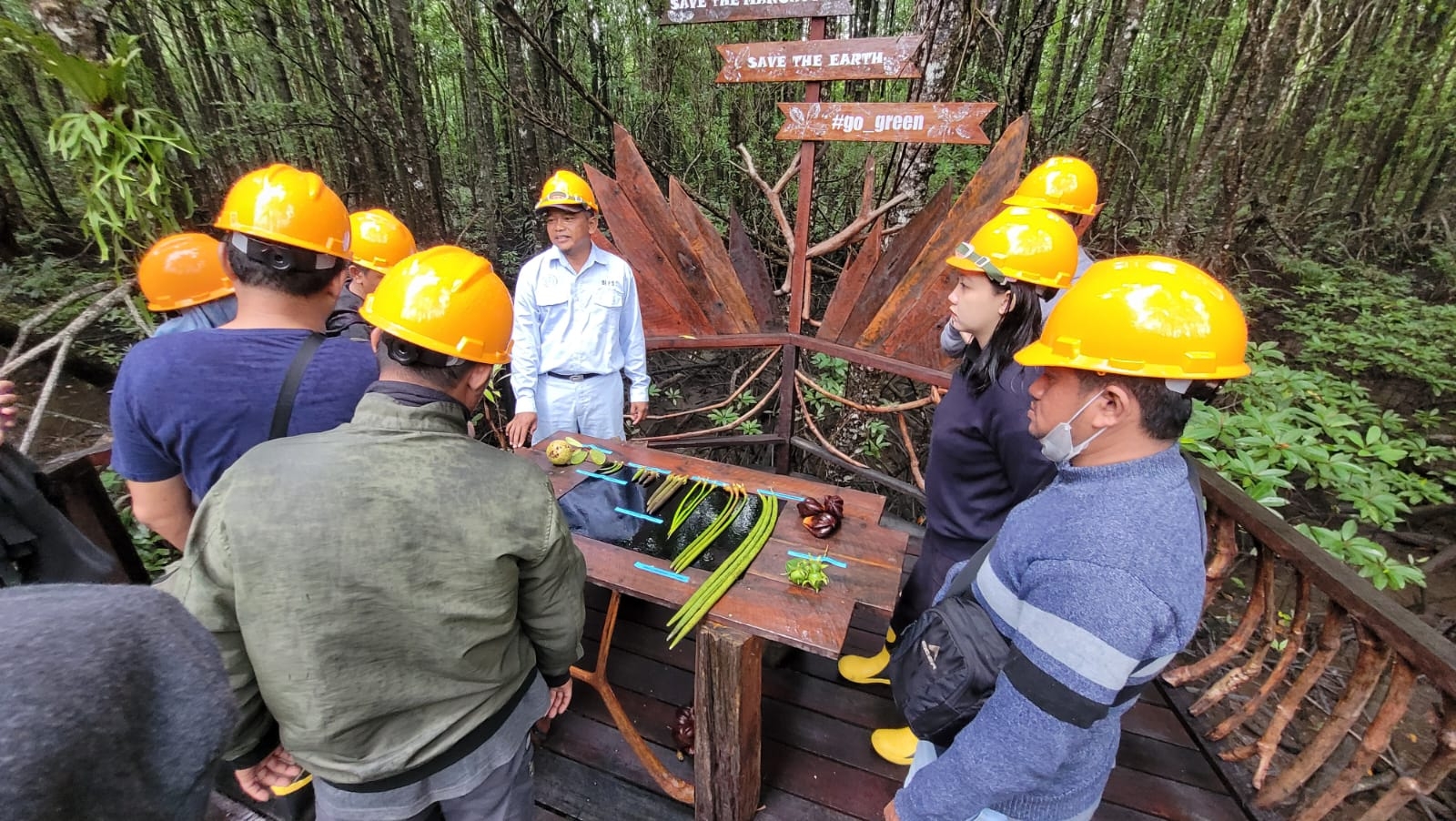 3. Program “Go Green” edukatif, seperti yang ditunjukkan dalam kegiatan lapangan bersama tim Bappedalitbang, di mana para peserta diperkenalkan pada berbagai jenis tanaman dan manfaat ekologisnya.